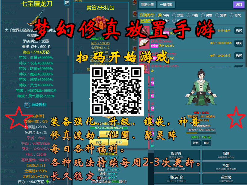 稳定更新,常玩常新:每周 2 - 3 次更新,新内容玩法持续上线,修仙乐趣永不落幕。